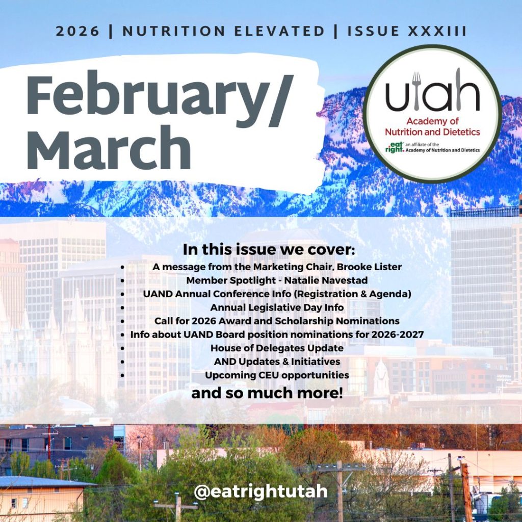 Also, our annual conference is coming up on March 17th & 18th! Registration is now OPEN and you can view our awesome lineup of speakers online as well. More information is on the UAND website which is linked in our newsletter.