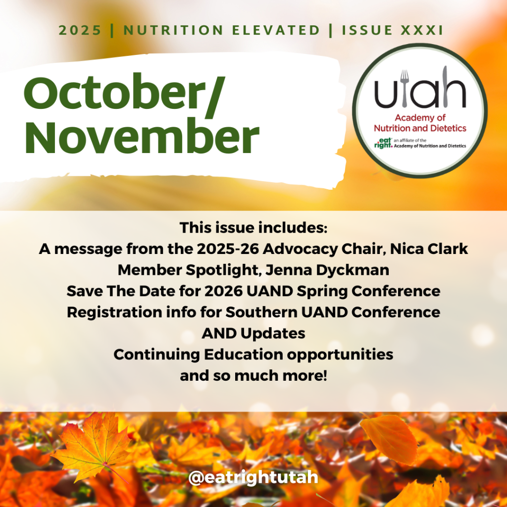 If you have something you would like to add or see featured in the newsletter, please send any relevant info or content to socialmedia@eatrightutah.org.